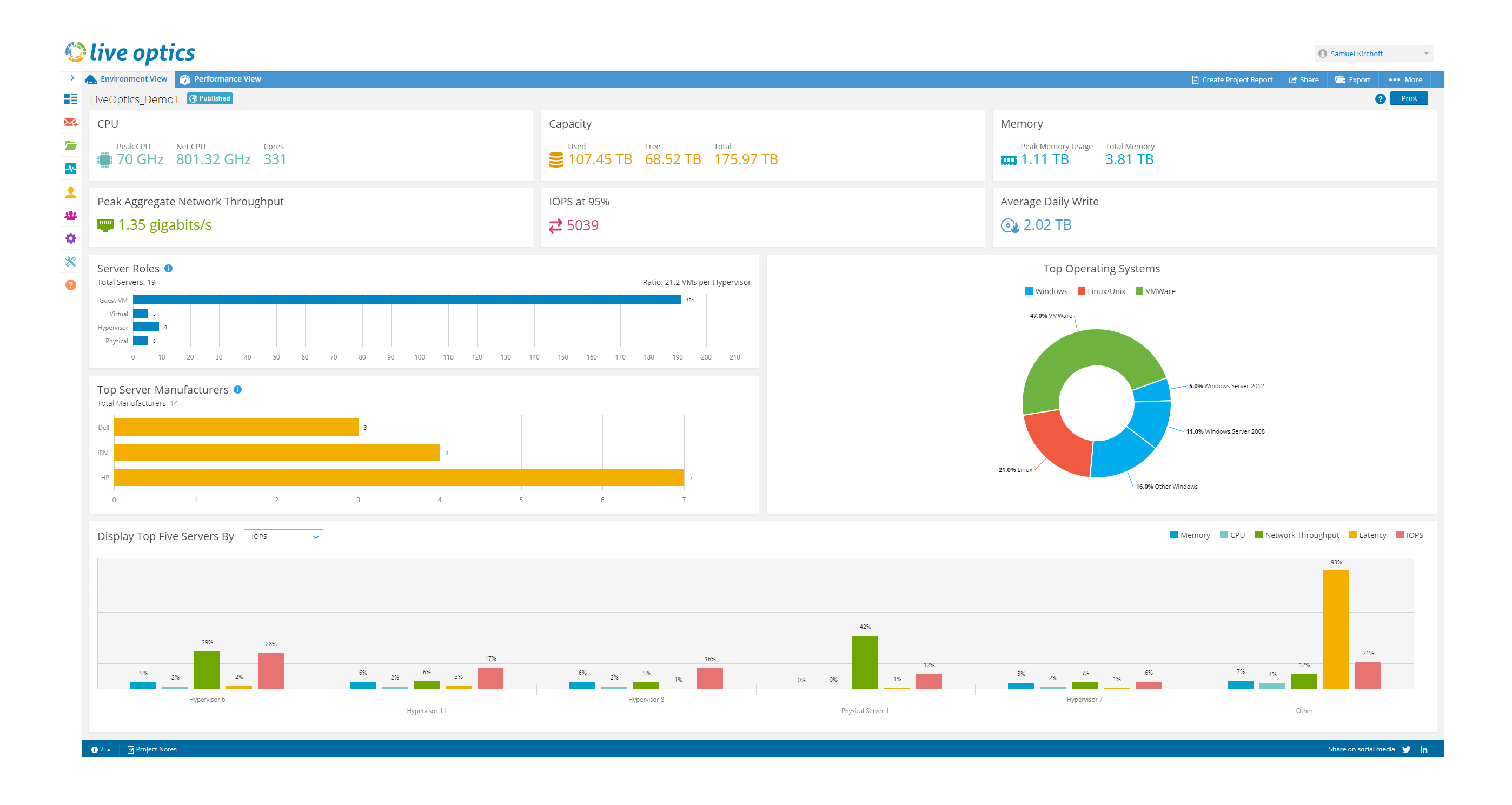 Live Optics 在設計上考慮到了 IT 和業(yè)務決策者的需要。利用此功能強大的在線軟件,您可以:
